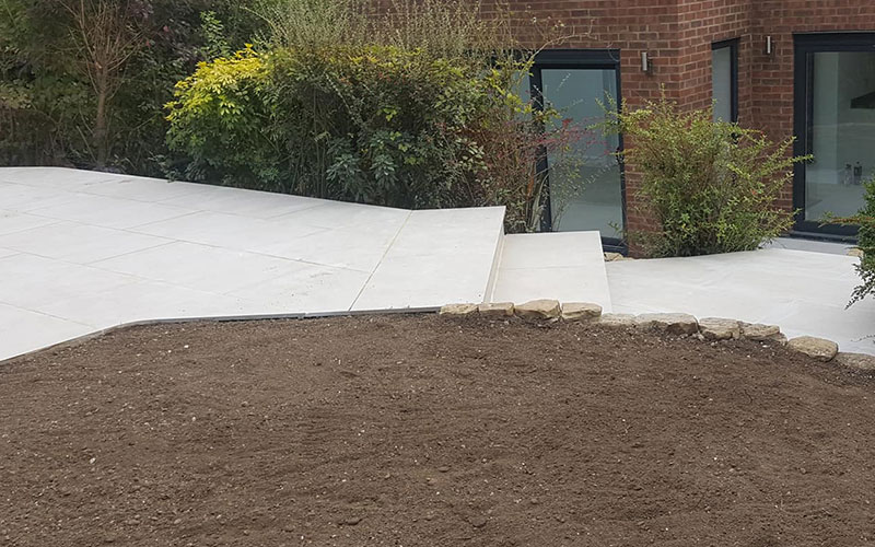 After building a large single storey extension for this client, we moved onto creating a new patio area. The existing garden sloped down towards the house with old unmaintained steps which were becoming dangerous to use.